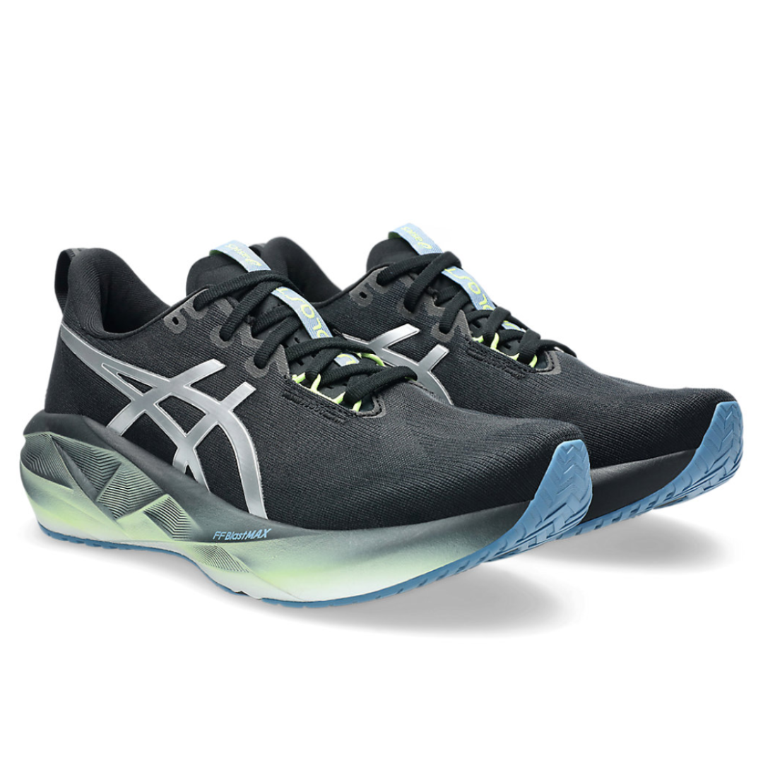NeonGlide™ combines a black mesh upper with silver details and a green gradient sole, designed for responsive cushioning and comfort during everyday workouts.